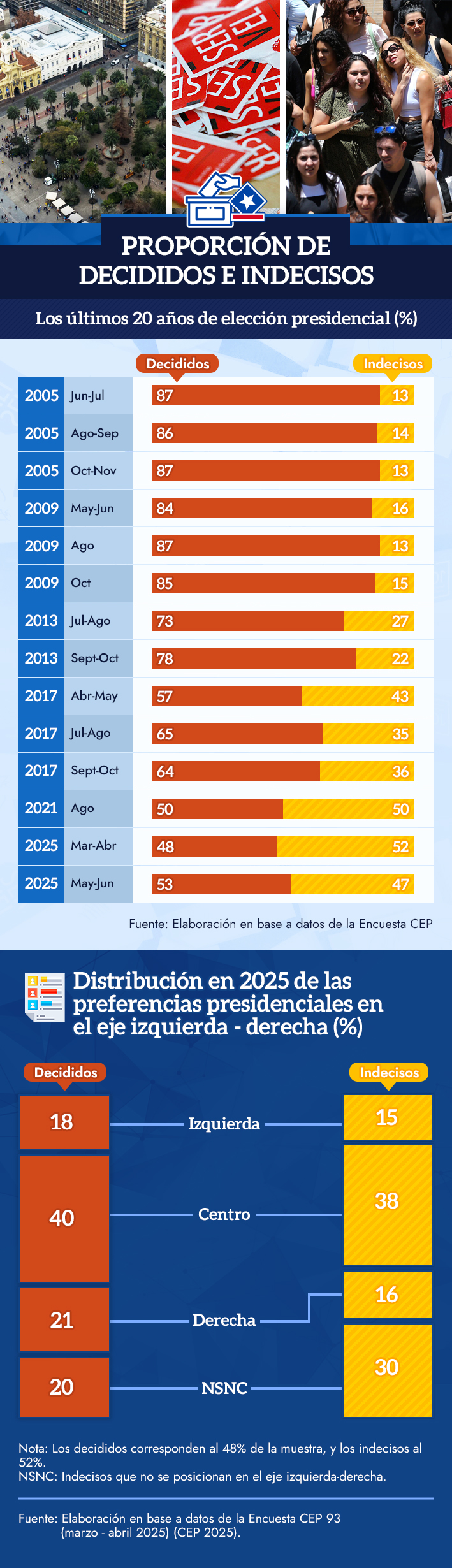 Según un análisis del Centro de Estudios Públicos (CEP), quienes no han definido su opción presidencial son mayormente moderados.